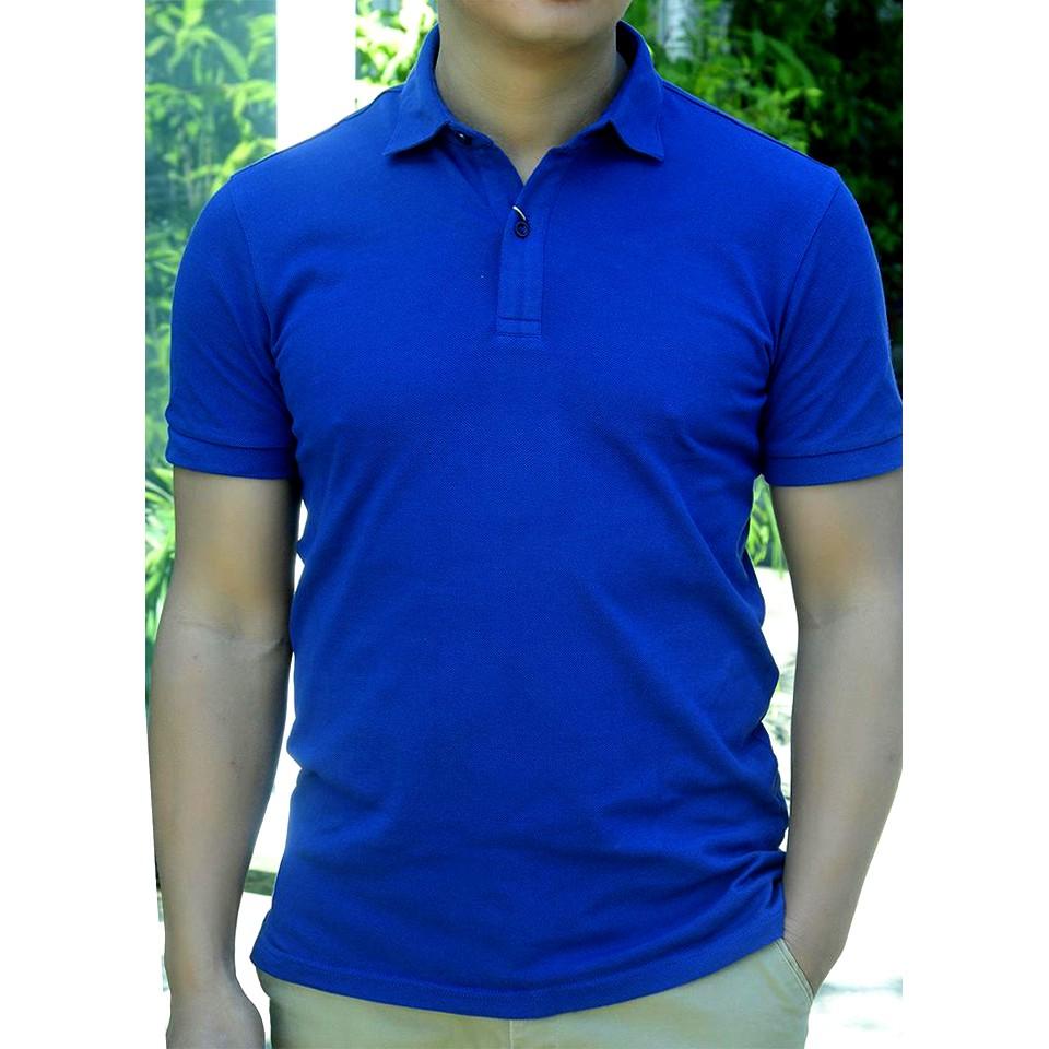 ✨Áo Thun Có Cổ Cá Sấu 4 Chiều Màu Xanh Dương - Xanh Bích