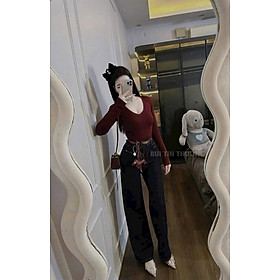 ✨Áo thun dài tay nữ cổ tim có đệm vai HOT HIT
