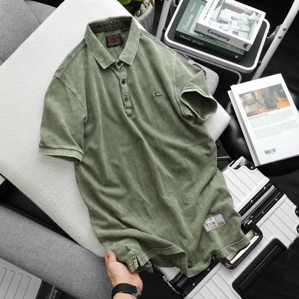 ✨Áo thun polo wash bụi E.V.I.S.U_phượt_dã ngoại