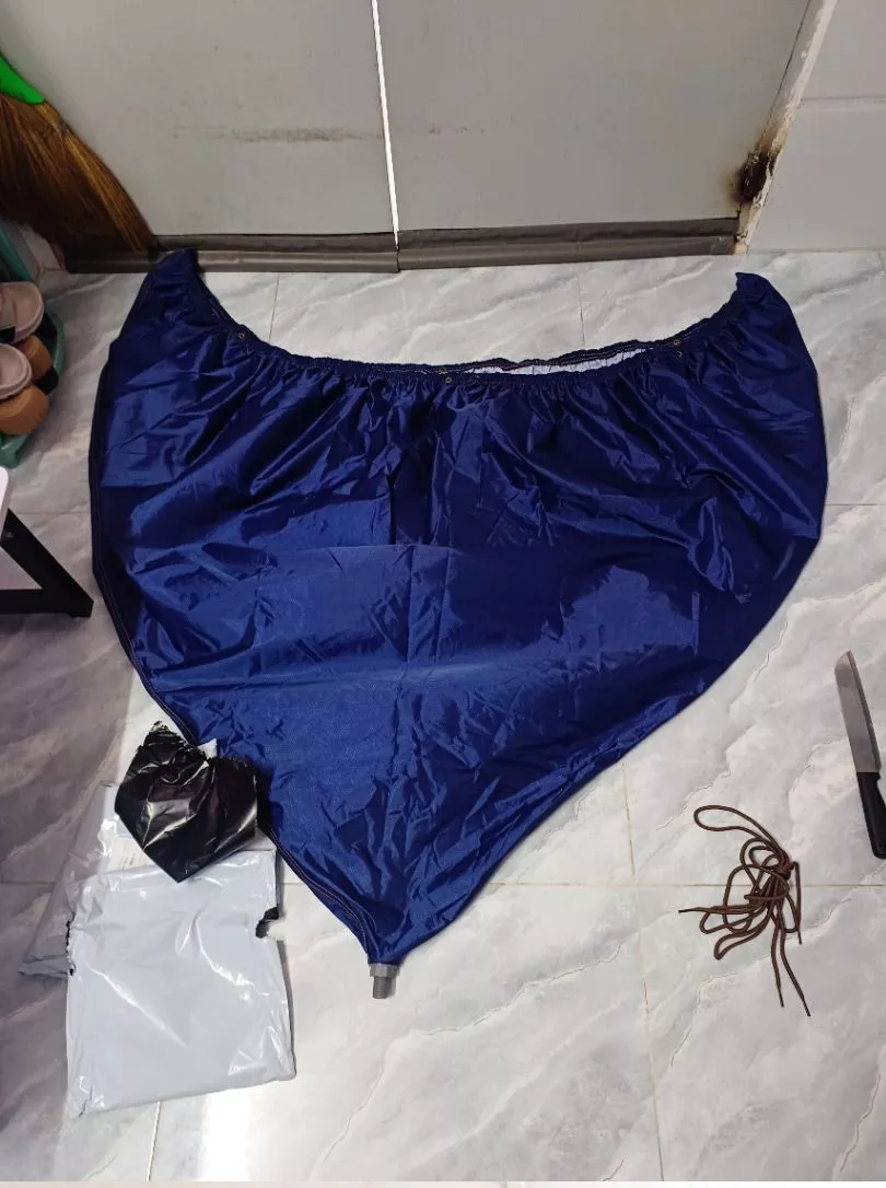 - Sử dụng dây luồn trên miệng áo vệ sinh có thun co giãn, sau đó treo áo vệ sinh trùm phía dưới máy lạnh, kéo miệng áo ra phía ngoài và đưa vòi xịt vào, nước và bụi bẩn sẽ theo đường ống đi vào xô đặt phía dưới.