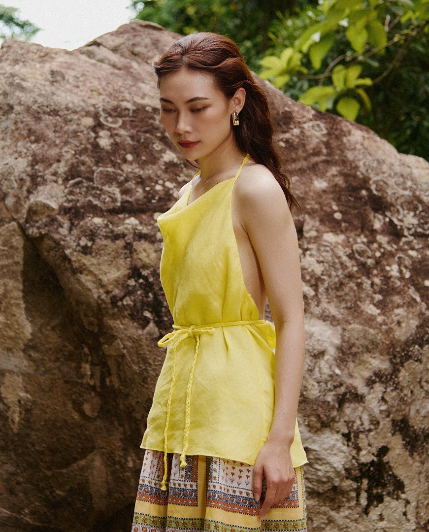 Kiểu dáng hở lưng gợi lên vẻ đẹp quyến rũ, bí ẩn. Yếm mang phong cách tự do, phóng khoáng, như nàng kim tước vàng anh gợi cảm.