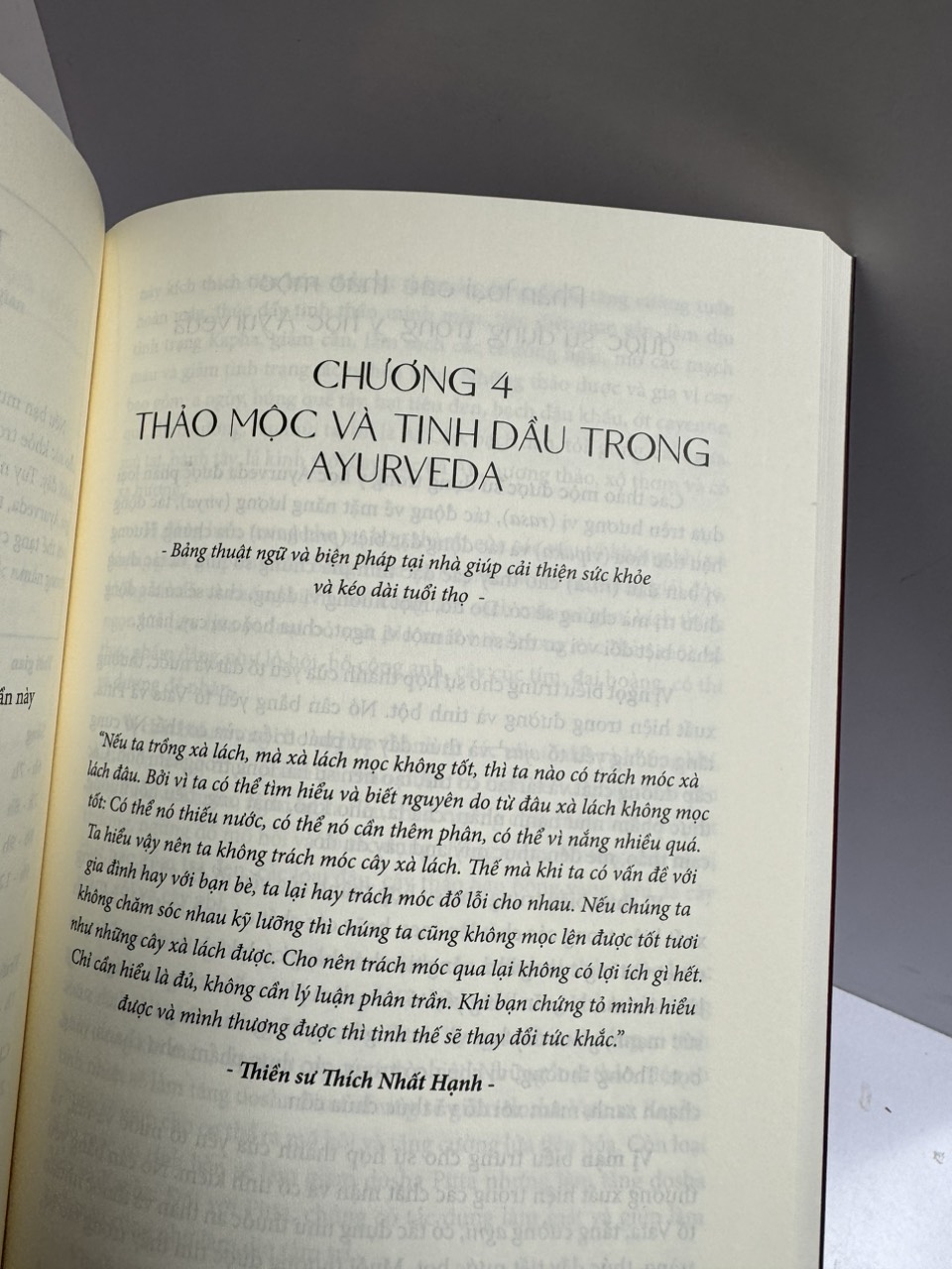Lý do tại sao một số sự mất cân bằng thường dẫn đến bệnh tật và chỉ cho bạn cách khôi phục cơ thể về trật tự tự nhiên. Bạn sẽ tìm hiểu những phương thuốc Ayurvedic truyền thống nào - trà thảo mộc và công thức, tinh dầu, thiền, yoga - giúp giảm bớt nhiều tình trạng bệnh, chẳng hạn như các triệu chứng cảm lạnh và cúm, đau đầu, đau răng, viêm họng, cholesterol cao, các vấn đề về thị lực , lo lắng và trầm cảm. Cuốn sách cũng chỉ cho bạn cách áp dụng chế độ ăn kiêng và các kỹ thuật Ayurvedic cụ thể để ngăn ngừa bệnh tật trong tương lai và thúc đẩy ý thức cơ thể cũng như lối sống lành mạnh.