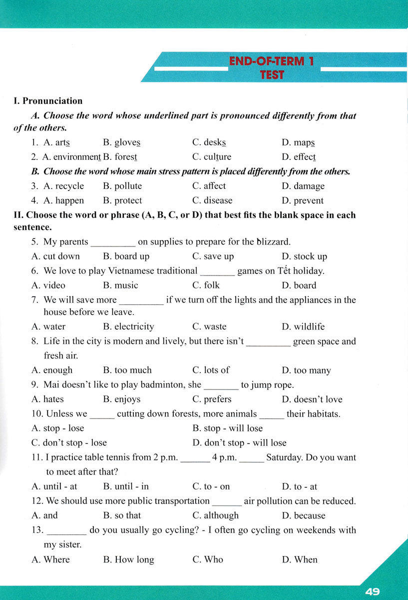 “BÀI TẬP BỔ TRỢ TOÀN DIỆN TIẾNG ANH 8 - Người bạn đồng hành của các em học sinh” theo Chuẩn Chương trình giáo dục phổ thông môn Tiếng Anh năm 2018 của Bộ Giáo dục và Đào tạo và đặc biệt bám sát theo từng unit của sách giáo khoa Tiếng Anh 8 theo chương trình mới. Quyển sách sẽ tập hợp đa dạng các bài tập và đề kiểm tra về ngữ âm, từ vựng, ngữ pháp, và đặc biệt là năng lực giao tiếp bằng tiếng Anh.