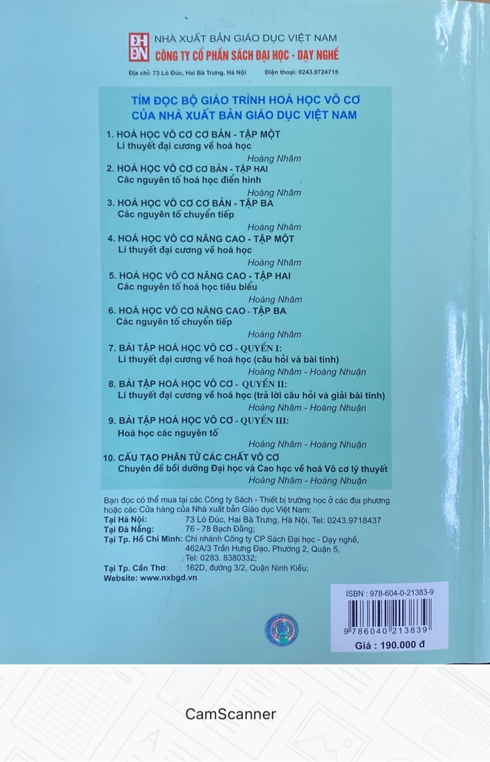 ✨Bài tập Hoá học vô cơ, Quyển III, Hoá học các nguyên tố - A. Nguyên tố tiêu biểu, B. Kim loại chuyển tiếp