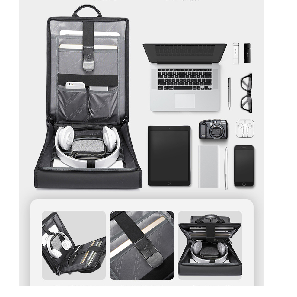 FEATURES - Business backpack with dedicated compartment to protect 15.6" laptop - Spacious U-shaped main compartment opening design increases luggage accessibility - Organized storage in the front compartment keeps essentials neatly organized - Expandable side