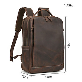 Kích thước : rộng 33cm X cao 46cm X dày 15cm Trọng lượng: 1.45 kg Màu sắc: Nâu, Nau sẫm, Đen Phương pháp sản xuất: thủ công Chất liệu : Da BÒ THẬT Chức năng: thoáng khí, chống mài mòn, dễ làm sáng, chống sốc thiết kế : phong cách trẻ trung ,sang trọng, đẳng cấp