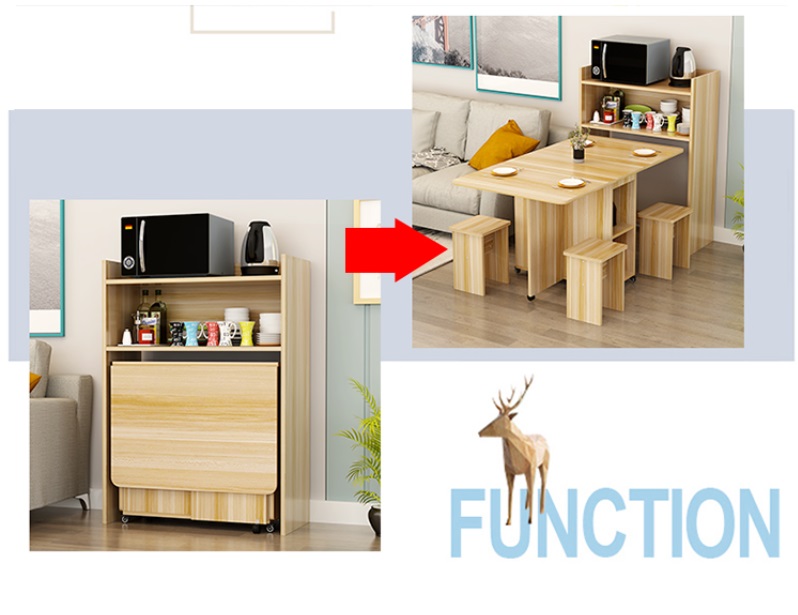 Chức năng: lưu trữ và bàn ăn Chất liệu: gỗ thông Phong cách: Bắc Âu Vừa là tủ lưu trữ, vừa là bàn quầy bar thông minh, tiết kiệm không gian màu sắc: Màu gỗ