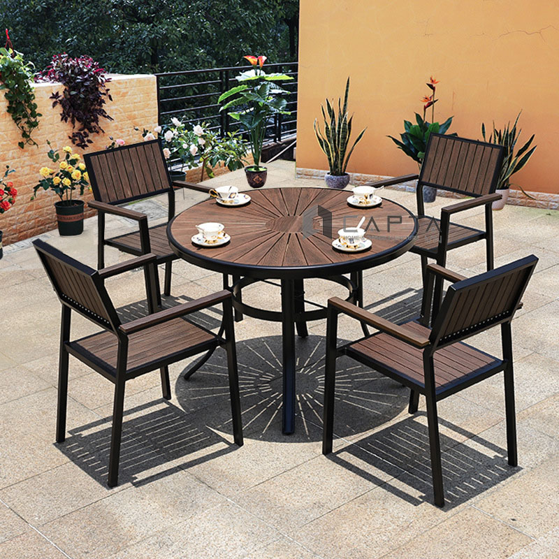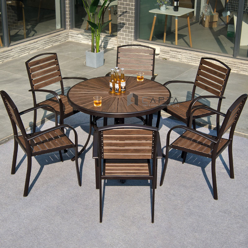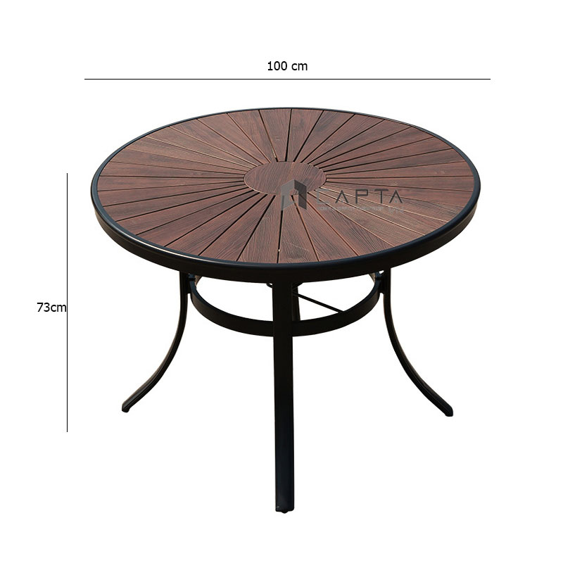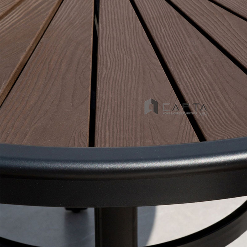 Bàn ăn sân thượng tròn 1m TE2041-100A Nội thất Capta Bàn nhà hàng ngoài trời mặt gỗ nhựa polywood chân nhôm cho 4 đến 6 ghế ngồi - Chất liệu: Mặt bàn gỗ nhựa Polywood