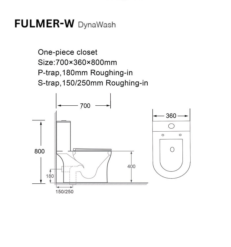 * Mã SP: Fulmer * Bàn Cầu một khối * Chất liệu: Sứ men trắng cao cấp phủ nano * Màu sắc: Màu trắng sáng. * Kích thước: 360(W) x 700(L) x 800(H) mm *
