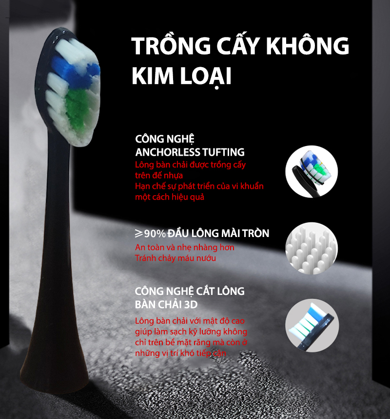 - Loại bỏ 100% sự ố màu - Làm trắng răng thông minh nhờ thiết kế lông chải kim cương và mảng chải trung tâm - Quý khách vui lòng chọn đúng mẫu đầu bàn