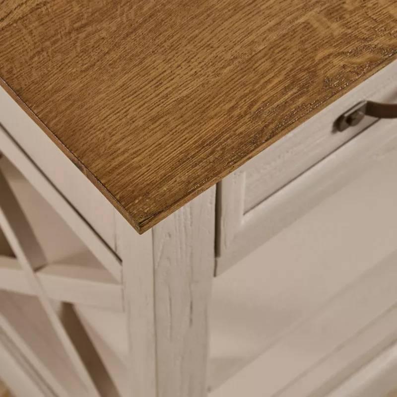 Bàn console 2 ngăn kéo Seychelles có kiểu dáng nhỏ gọn, rất thích hợp đặt ở khu vực hành lang và lối vào. Thiết kế mang đặc trưng của bộ sưu tập Seychelles với màu sơn trắng xám nhẹ nhàng, kết hợp hài hòa màu nâu tự nhiên của gỗ. Hai mặt bên với chi tiết trang trí chéo riêng biệt, đường viền trang trí bắt mắt mang lại sự tươi mới và khác biệt cho ngôi nhà của bạn. Bàn được làm từ gỗ sồi trắng Mỹ nhập khẩu, áp dụng kỹ thuật ghép mộng truyền thống vào chế tác tạo nên một tổng thể chắc chắn và bền đẹp theo thời gian. Hai ngăn kéo rộng rãi sẽ là nơi lưu trữ tiện dụng cho các vật dụng trong nhà trở nên gọn gàng và ngăn nắp.