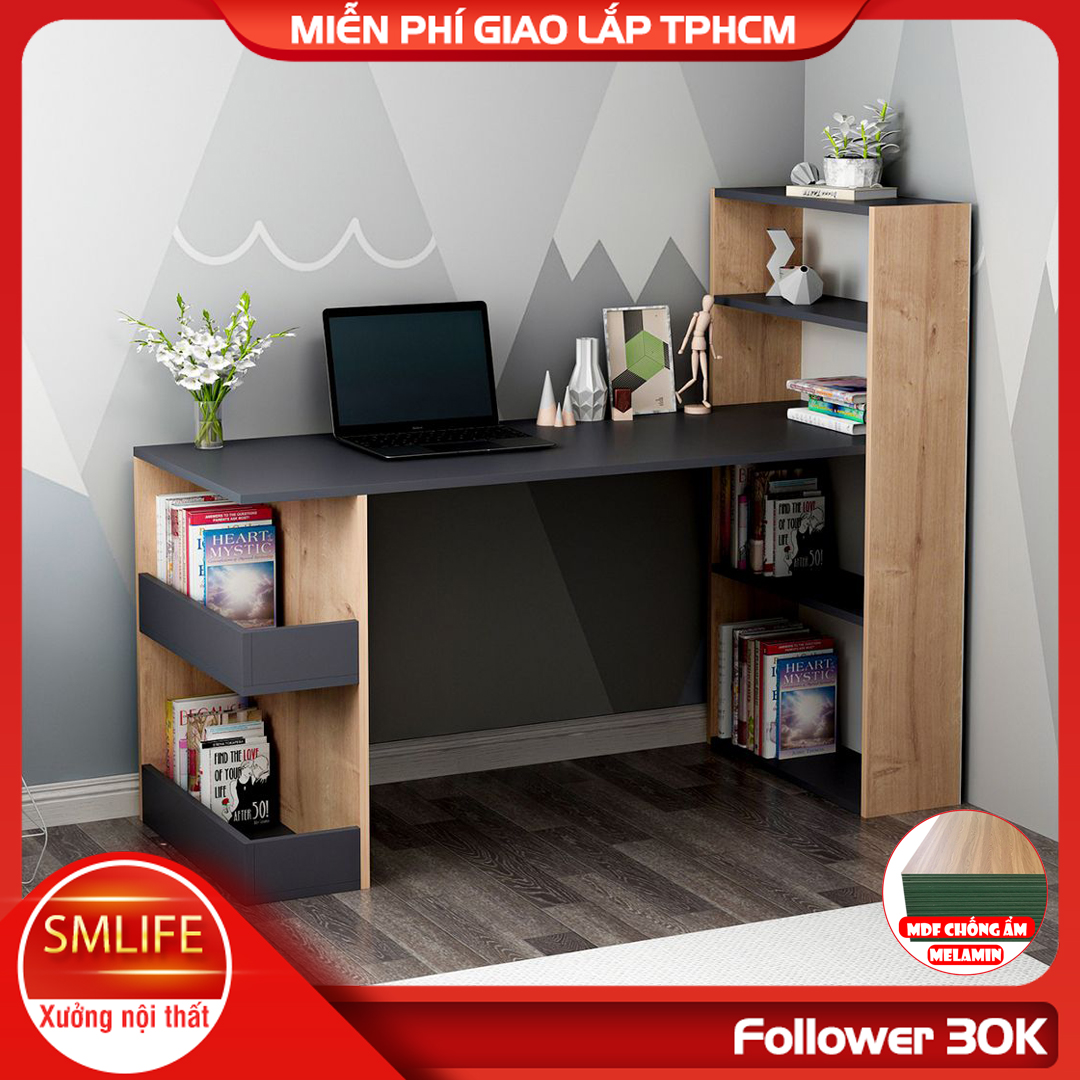 ✨Bàn làm việc liền giá sách gỗ công nghiệp hiện đại SMLIFE Dhani