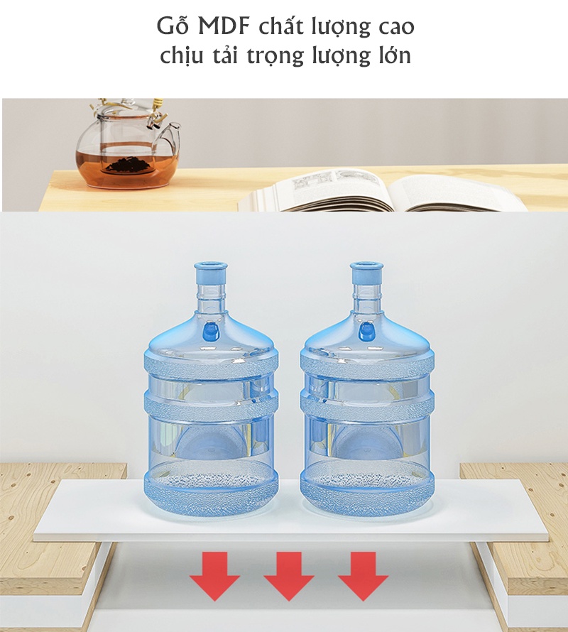 Kích thước: 60x40x30cm (mặt bàn cao 24cm) Chất liệu: Sản phẩm sản xuât từ gỗ MDF phủ melamin cao cấp chống xước chống nước bề mặt sáng bóng. Màu sắc: Trắng - Vân gỗ Công