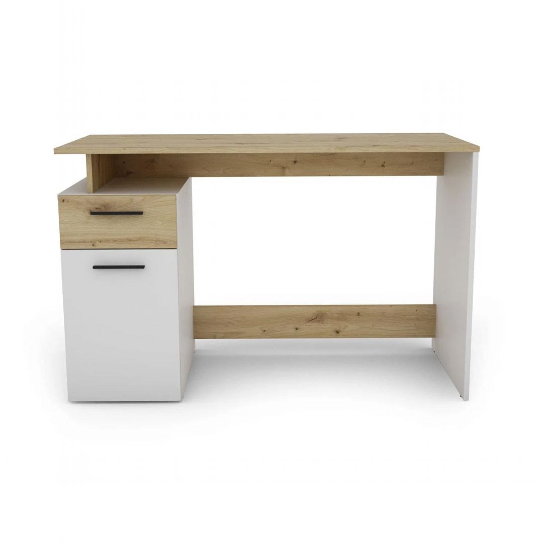 - Tên sản phẩm: Bàn làm việc kèm ngăn kéo và kệ để đồ - Chất liệu: Gỗ MDF phủ melamine cao cấp chống xước - chân bàn gỗ tự nhiên - Màu sắc: Vân gỗ sồi - Kích thước: 80/120 x 55 x 82cm (dài x rộng x cao) - Công năng: Là mẫu bàn làm việc, bàn học giúp tiết kiệm diện tích không gian phòng