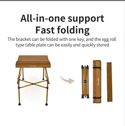 NatureHike CNH22JU038 chất liệu hợp kim nhôm vân gỗ nhẹ, bền và vô cùng sang trọng. Thiết kế khung bàn chữ X hỗ trợ ổn định hơn, tải trọng cao tới 30kg. Khung bàn có thể
