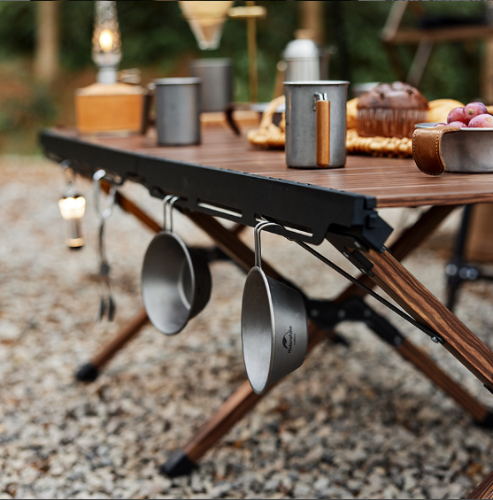 Bàn gỗ gấp gọn ray trượt NatureHike NH21JU001 phối màu giữa gỗ óc chó đen và gỗ sồi trắng Bắc Mỹ tạo nên vẻ đẹp sang trọng. Thiết kế có thể mở rộng bàn. Gấp gọn,