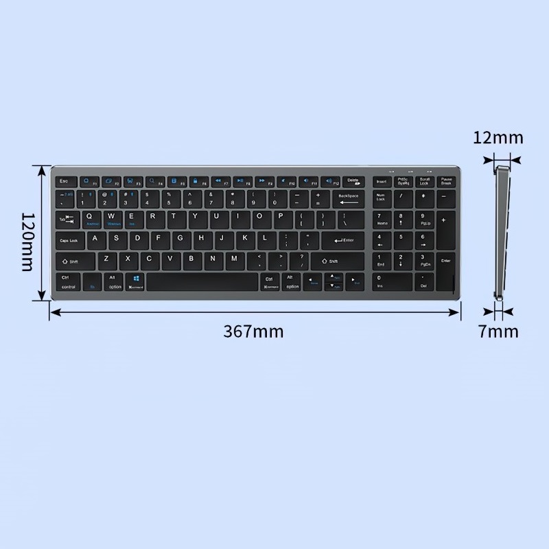 Bàn phím Bluetooth rời gấp gọn tương thích Windows, Mac, iOS và Android kết nối điện thoại, laptop, máy tính bảng - Chất liệu: ABS - Kích thước: 282x94,5x8,8mm - Kích thước gấp: 141x94,5x17,6mm -
