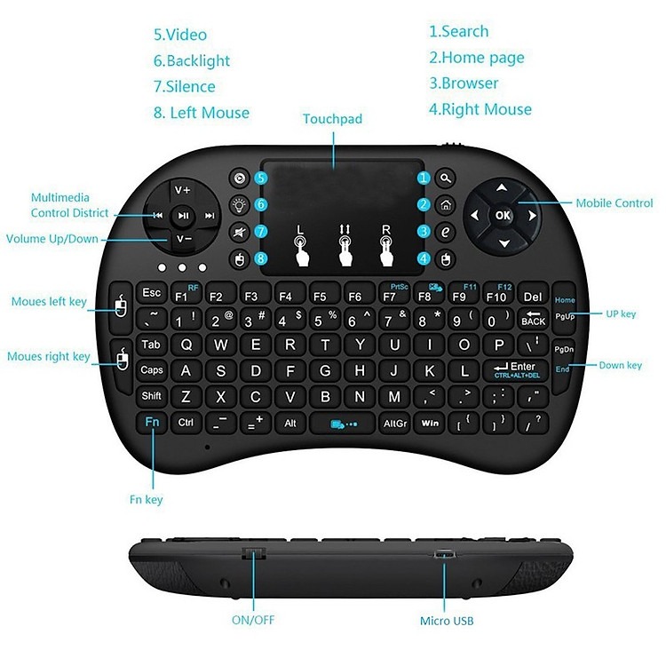 - Bàn phím mini wireless 2 trong 1 được sử dụng giống như chuột máy tính.