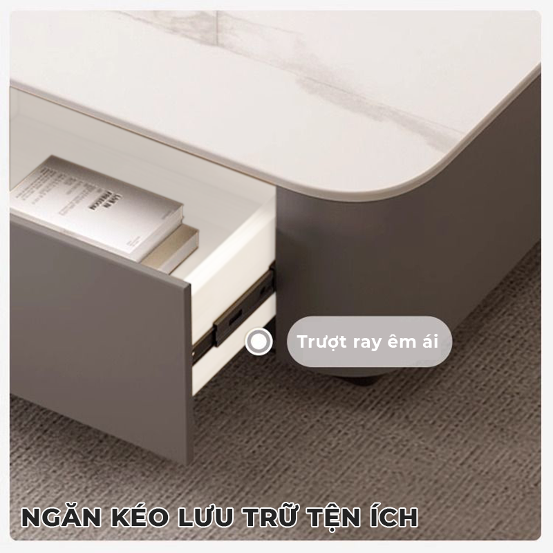 - Công năng: Là mẫu bàn sofa phòng khách sang trọng với thiết kế bọc da quanh viền và mặt bàn màu vân đá hiện đại