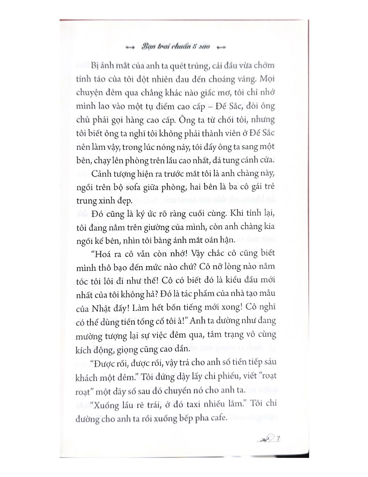 Cuốn sách Bạn Trai Chuẩn 5 Sao của tác giả Hồng Táo là một cuốn tiểu thuyết viết về câu chuyện tình yêu của một đôi trai gái yêu nhau, câu chuyện kể về sự bất chấp cả việc đánh mất bản thân mình, cô tìm mọi cách rũ bỏ quá khứ bất hạnh để theo đuổi lối sống thượng lưu hằng mong ước. Mọi thứ giờ đây với cô đều phải có chuẩn nhất định, tất nhiên, bao gồm cả tình yêu.