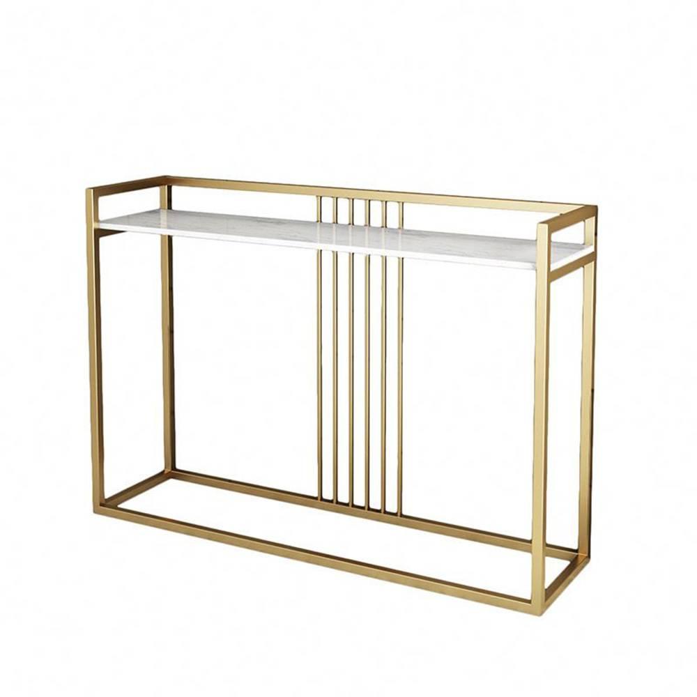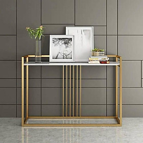 Bàn console, bàn trang trí mặt đá trắng khung sơn vàng CSTCT019 với điểm nhấn khung sắt sơn màu vàng kết hợp mặt đá trắng vân tạo toát lên vẻ đẹp sang trọng giúp nâng tầm giá