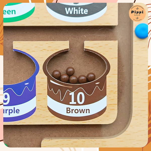 Chưa hết, đây cũng sẽ là công cụ hữu hiệu để trẻ học đếm vì trên từng hũ sẽ có đánh số thứ tự tương ứng với số viên bi cần phải di chuyển. Việc làm quen với màu sắc và số đếm trở nên thú vị hơn bao giờ hết. kích thước bảng: 26.5x19.5x2.5cm