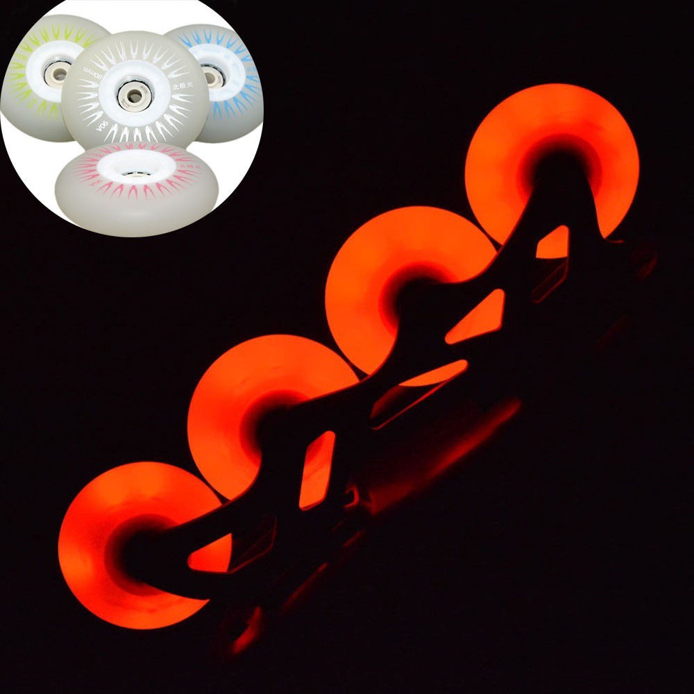 Mô tả sản phẩm: Hàng mới 100% Bánh xe gắn giày patin tích hợp đèn LED Làm cho giày trượt của bạn ngầu hơn! Độ cứng 90A, bền Chi tiết sản phẩm: Chất liệu: PU.