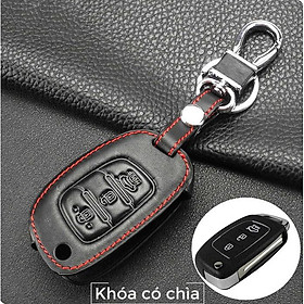 ✨Bao da chìa khóa đen chỉ đỏ dành cho xe GRAND I10, Elantra - chìa gập