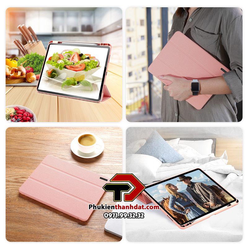 Bao Da iPad Có Giá Đỡ Gập Thông Minh Chống Sốc, Tự Tắt Mở Màn Hình, Hỗ Trợ Apple Pencil – Viền TPU, Mặt Lưng Trong Suốt Cao Cấp Bao da iPad thế hệ mới