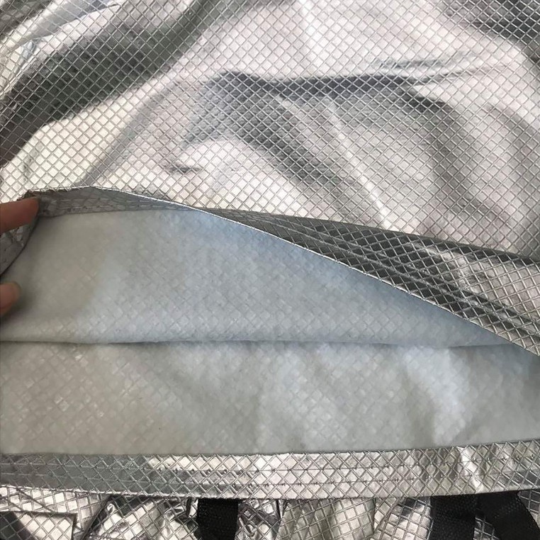 Bạt phủ xe ô tô bán tải 3 lớp tráng nhôm cách nhiệt, chống nóng, chống thấm, chống bụi bẩn - Bạt phủ xe có mặt ngoài là chất liệu vải PEVA tráng nhôm phản