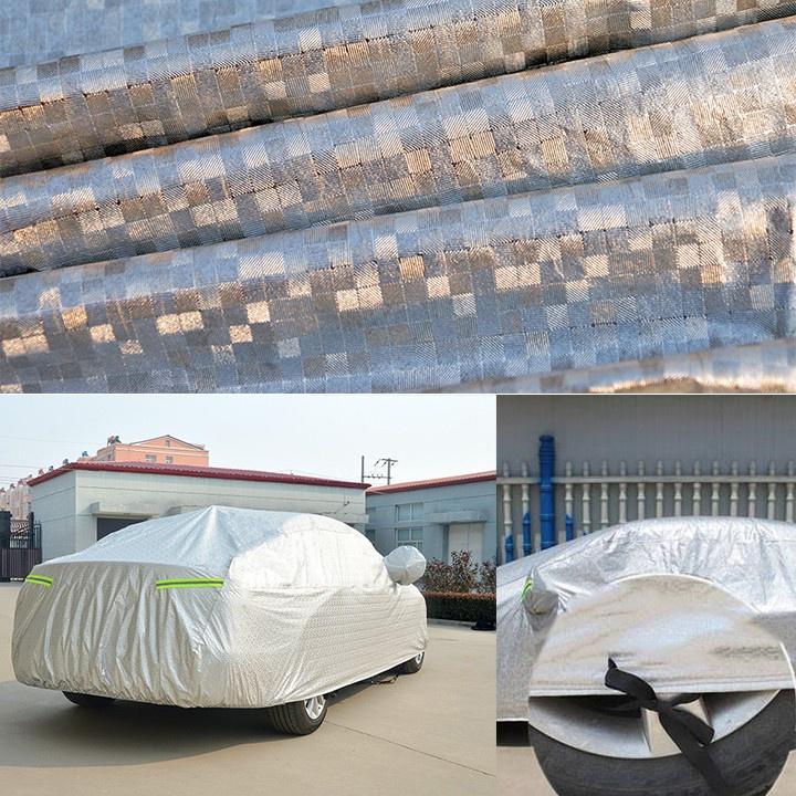 Bạt phủ xe ô tô 7 chỗ 3 lớp tráng nhôm cách nhiệt, chống nóng, chống thấm, chống bụi bẩn - Bạt phủ xe có mặt ngoài là chất liệu vải PEVA tráng nhôm phản