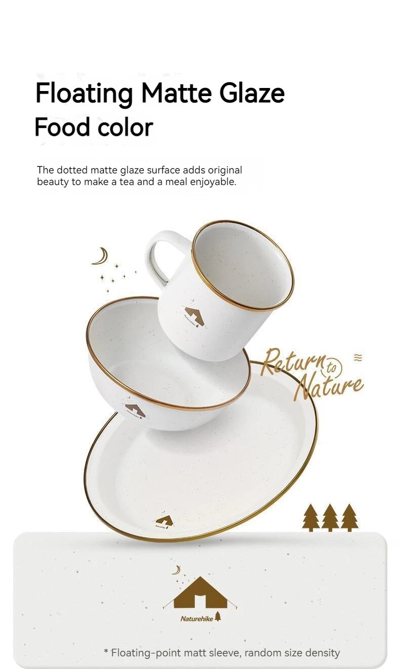 MÔ TẢ SẢN PHẨMBÁT, ĐĨA, CỐC TRÁNG MEN NATUREHIKE CNK2300CW013 Bát, đĩa, cốc tráng men NatureHike CNK2300CW013 kiểu dáng Vintage với họa tiết Camping siêu xinh, lớp men mờ chấm nổi mộc mạc, tự nhiên...