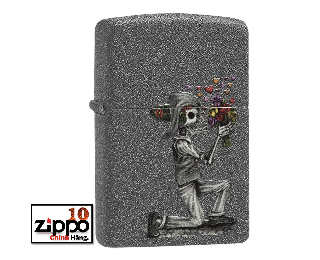 Cái chết không thể ngăn được tình yêu đích thực. Bộ hai chiếc bật lửa chống gió Iron Stone này ghi lại câu chuyện tình yêu lãng mạn. Được đóng gói trong một hộp đựng dạng quà tặng. Để tối ưu hiệu suất, hãy dùng nhiên liệu bật lửa của Zippo.
