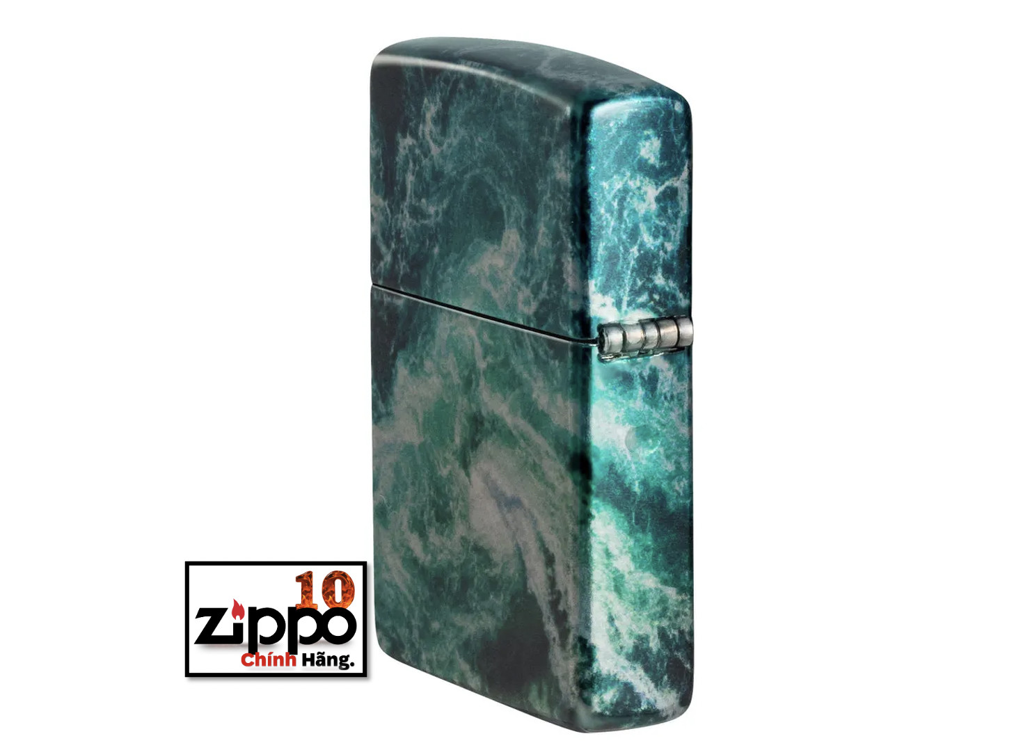 Thiết kế mới hoa văn vân đá cẩm thạch được tạo trên chiếc bật lửa Zippo đồng thau, nền mạ High Polish Black bằng qui trình in hình ảnh màu 360° của Zippo. Được đóng