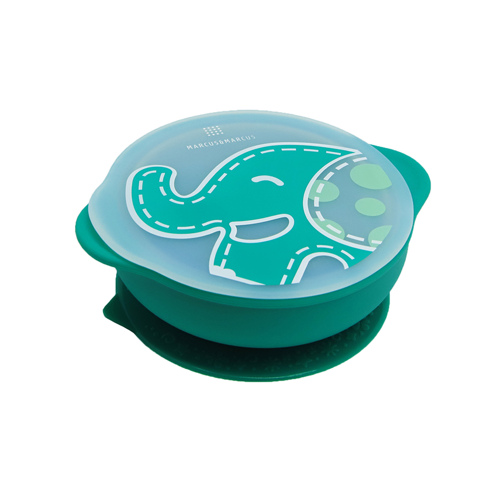 Bát tập ăn silicon có nắp và đế hút chân không chống đổ | Marcus & Marcus Self Feeding Suction Bowl