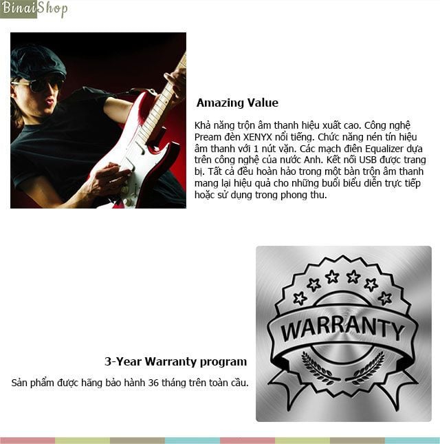 • Các EQ 3-band giống với các bàn mixer cổ điển nước Anh cho âm thanh ấm áp.