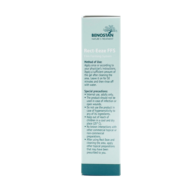 Benostan Nature's Treatment Rect-Eeze FFS (Hộp chứa một tuýp 30 ml, một vòi nhựa) có thương hiệu và được sản xuất bởi Benostan Health Products S.A., có nguồn gốc từ Hy Lạp.
