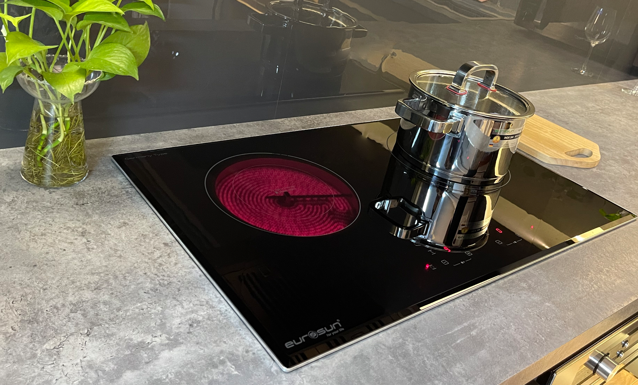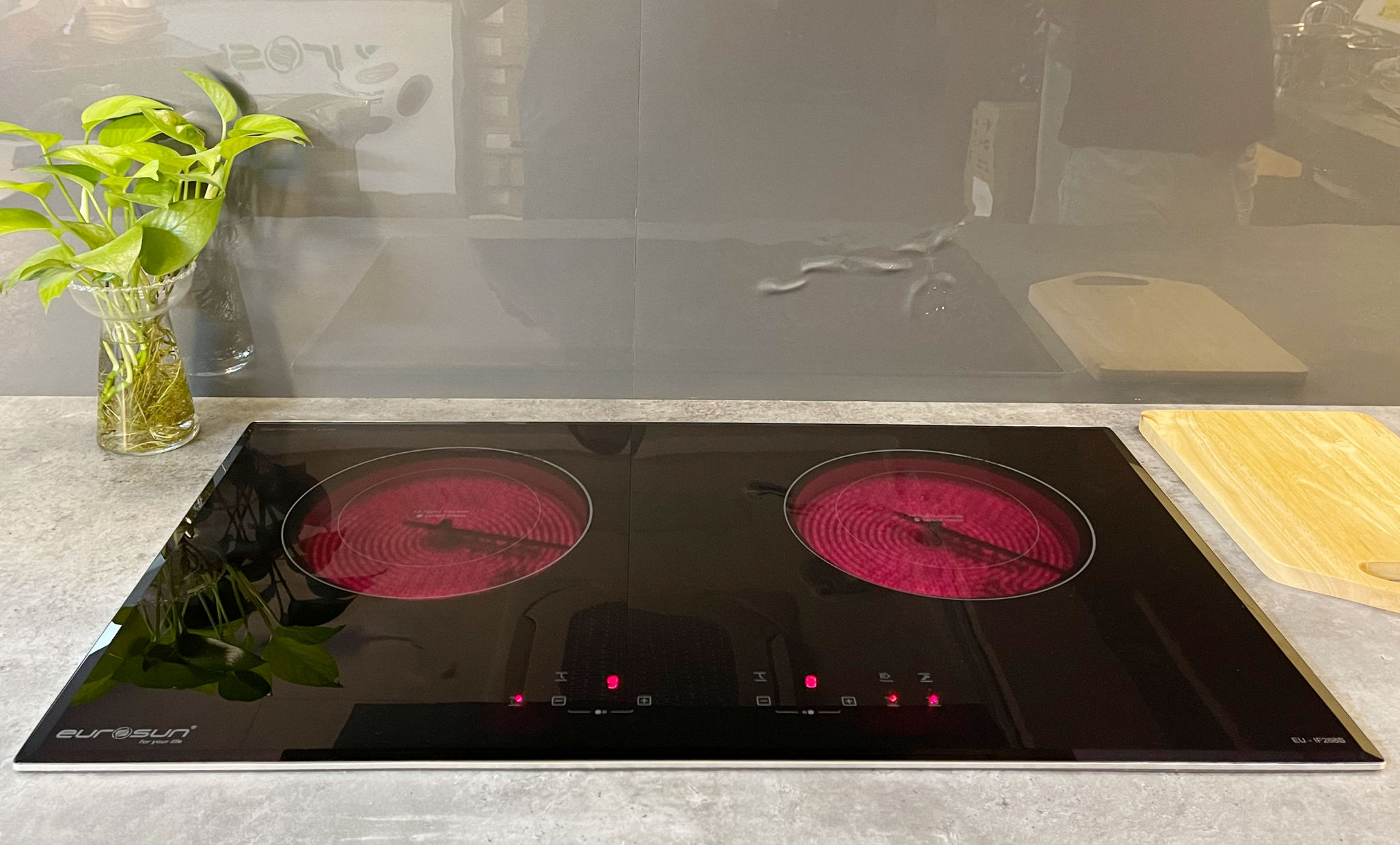 Bếp Eurosun EU-IF268S sở hữu 2 vùng nấu hồng ngoại rộng rãi thiết kế theo phong cách châu Âu, phong cách bếp hiện đại, tinh tế, giúp quý khách có một không gian bếp đẹp, tiện lợi sử dụng. Mặt kính VITRO Ceramic là một loại sứ tinh thể đen chịu nhiệt, không chỉ bền, khó bị nứt vỡ trong quá trình sử dụng, chất liệu này còn mang đến độ sáng bóng cho mặt kính, có thể hoàn toàn yên tâm về độ sạch của mặt bếp vì đây là chất liệu khó bị bám bẩn, dễ lau chùi.
