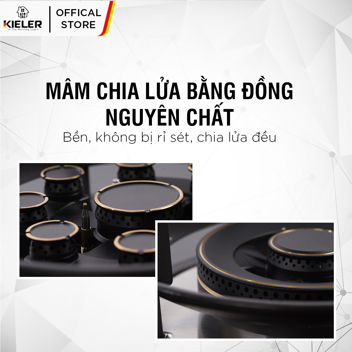 • Họng bếp bằng đồng chống oxy hóa, tăng tuổi thọ bếp