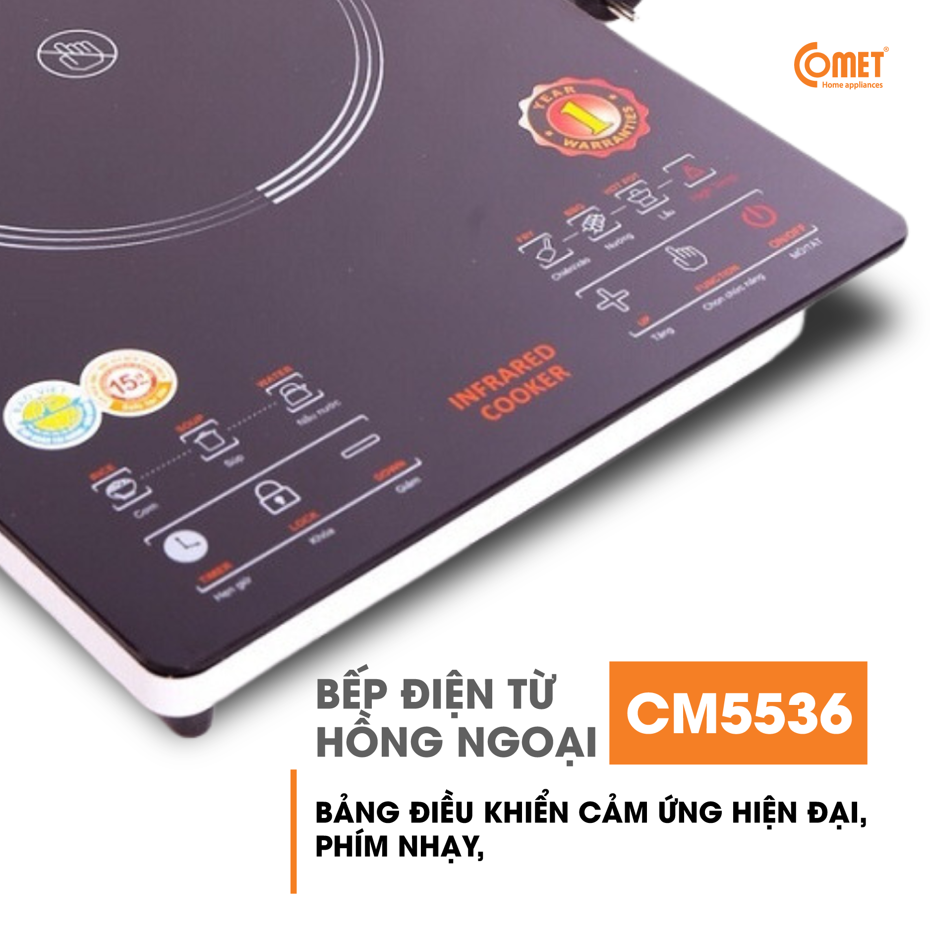 THÔNG TIN KỸ THUẬT: 1.Thương hiệu : COMET 2.Sản phẩm : Bếp hồng ngoại ( nút cảm ứng) 3.Mã sản phẩm : CM5536 4.Điện áp : 220V - 50Hz 5.Công suất: 2000W 6.Kích thước :