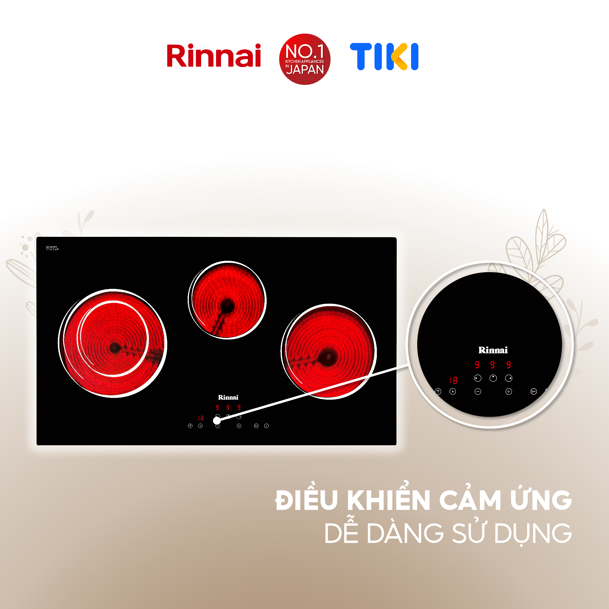 Bếp hồng ngoại Rinnai RB-7013E-CB mặt kính Schott 5200W - Hàng chính hãng.