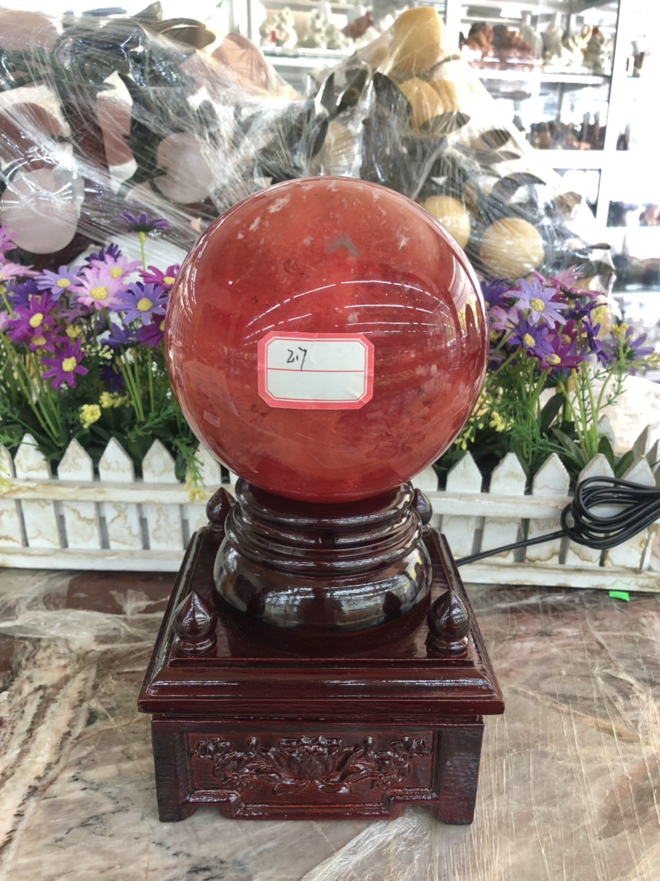 Quả Cầu Phong Thủy Màu Đỏ Thủy Tinh Obsidian Đế Đèn Xoay 7.2kg-18.5cm