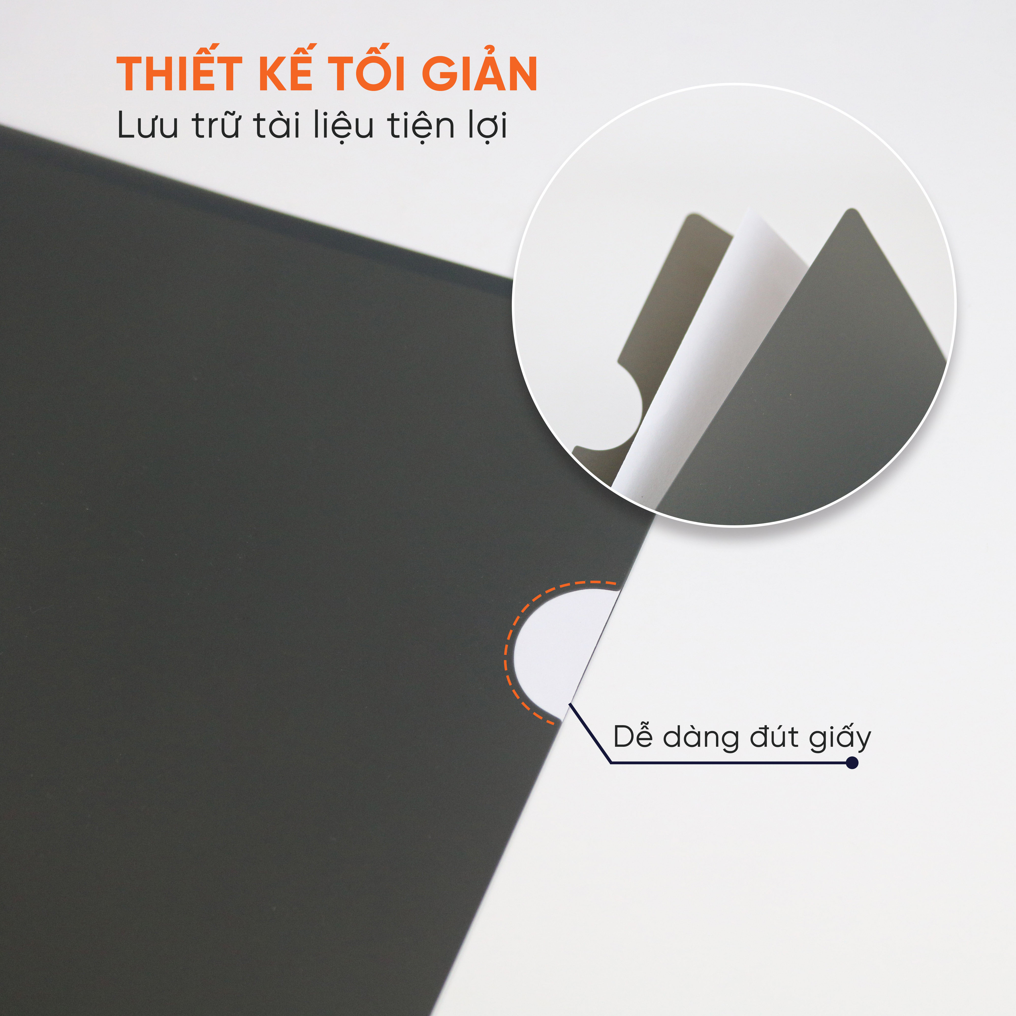 ĐẶC TÍNH NỔI BẬT: - Túi không khuy cài giúp giữ tài liệu phẳng phiu, không bị hằn vết - Hai màu thanh lịch, các góc bo tròn an toàn cho tay khi sử dụng