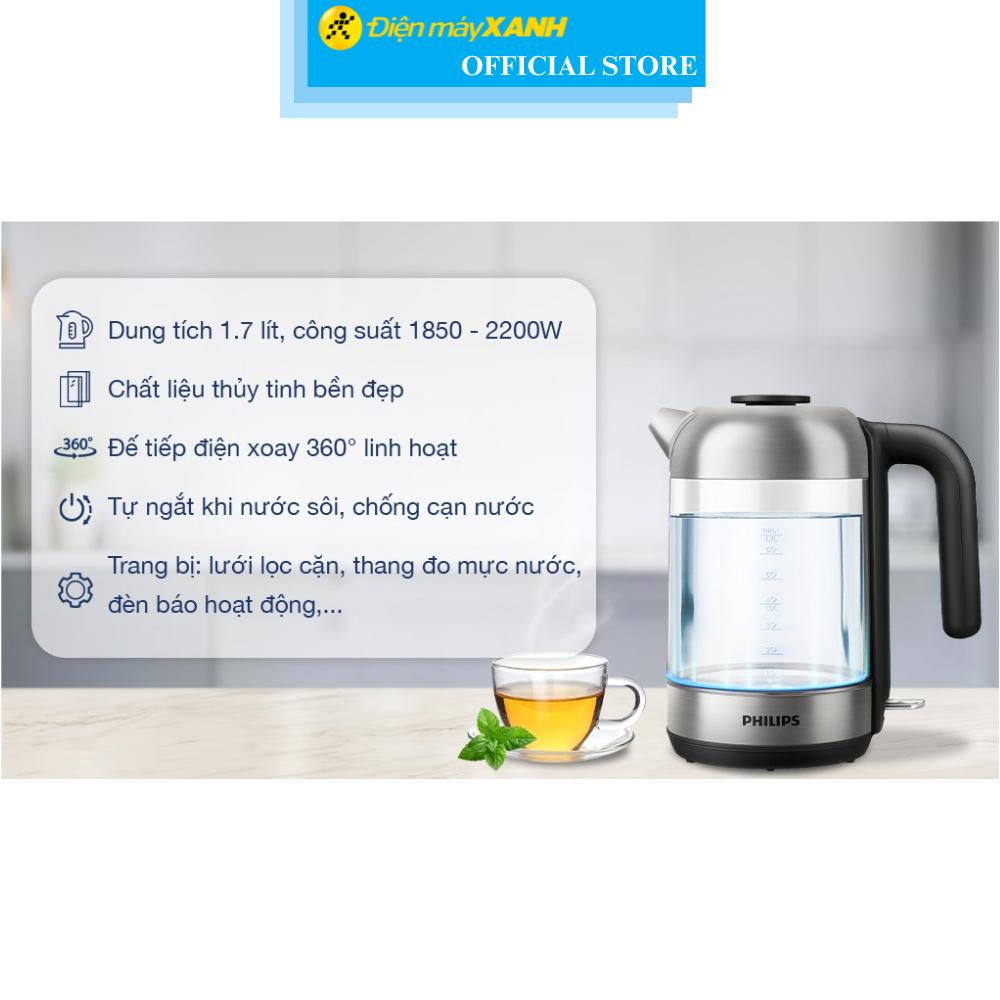 Ấm siêu tốc thân thuỷ tinh Philips HD9339/80 1.7L 2200W - taitranghangduc.com