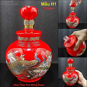 Bình Đựng Rượu Thủy Tinh cao cấp 1500ml mẫu bầu tròn màu đỏ may mắn