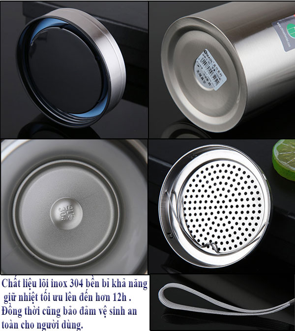 - Chất liệu inox dày bền bỉ chống móp méo khi va đập . Đồng thời lớp lõi inox 304 không chứa tạp chất độc hại ảnh hưởng sức khỏe , bảo đảm vệ sinh an toàn cho người dùng.