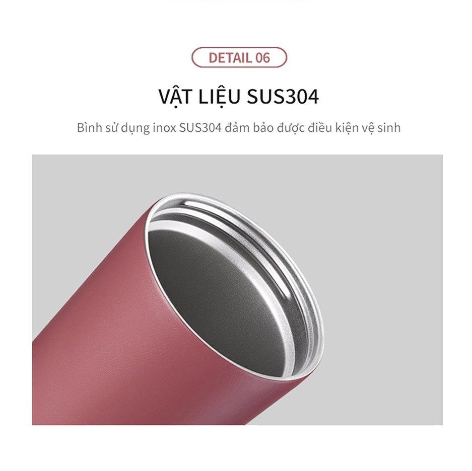 Sử dụng inox 304 tuyệt đối an toàn cho sức khỏe Dung tích 500ml Công nghệ hút chân không tối ưu, giữ nóng 8h và giữ lạnh lên đến 12h Thiết kế mạnh mẽ, có