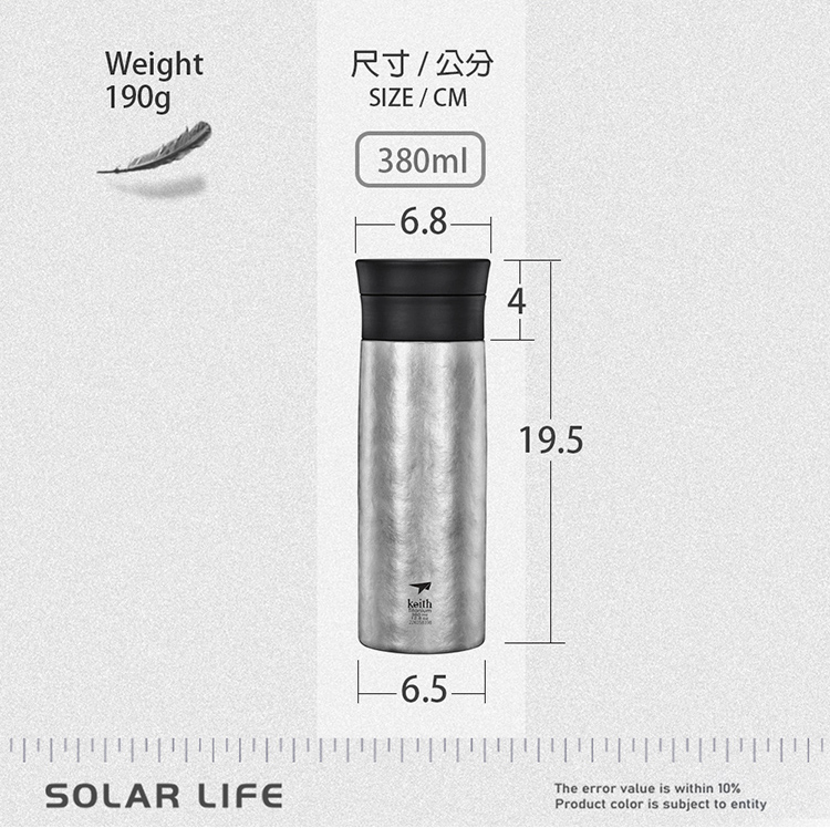THÔNG TIN SẢN PHẨM: - Thương hiệu: Keith Titanium - Xuất xứ: Trung Quốc - Chất liệu: Titanium - Kích thước: Ø 68 × Ø 65 × 195 mm - Trọng lượng: 6.6 OZ |