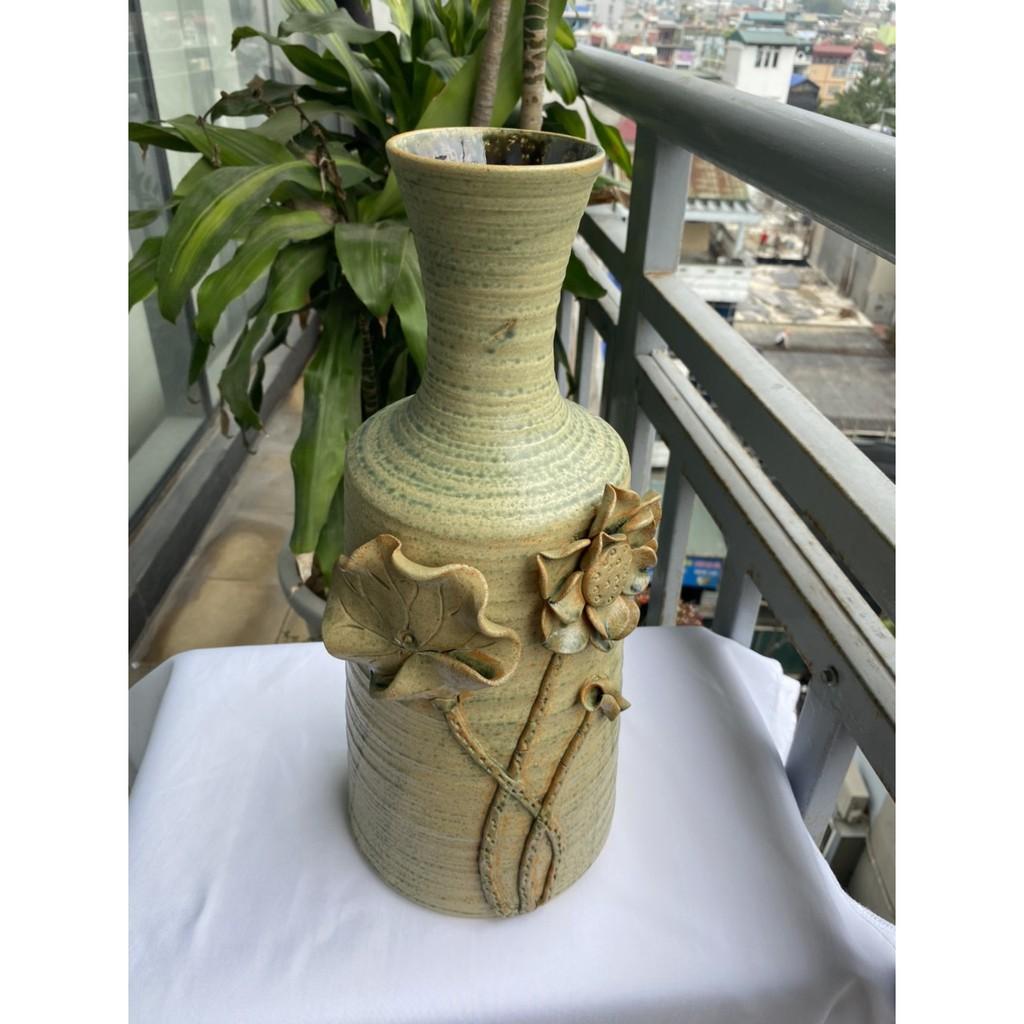 Bình hoa cao cấp Bát Tràng, hàng chuẩn loại 1, dáng chum họa tiết đắp nổi được thực hiện thủ công 100% bởi bàn tay lành nghề của các nghệ nhân làng nghề. Sản phẩm