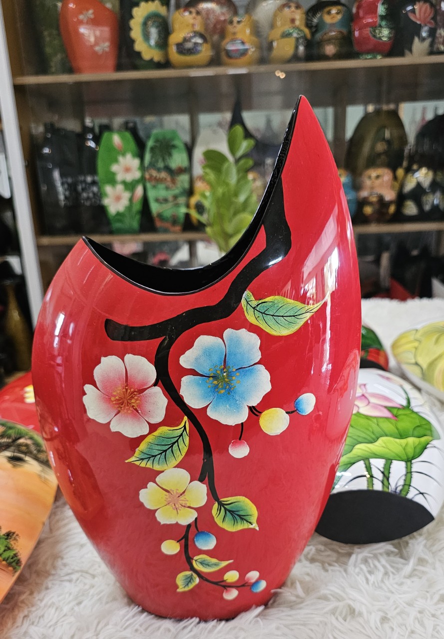 Bình sơn mài cao cấp Được làm từ những nguyên liệu chọn lọc, phủ bên ngoài là lớp sơn mài và được đánh bóng nhiều lần tạo nên vẻ đẹp sang trọng cho chiếc bình.